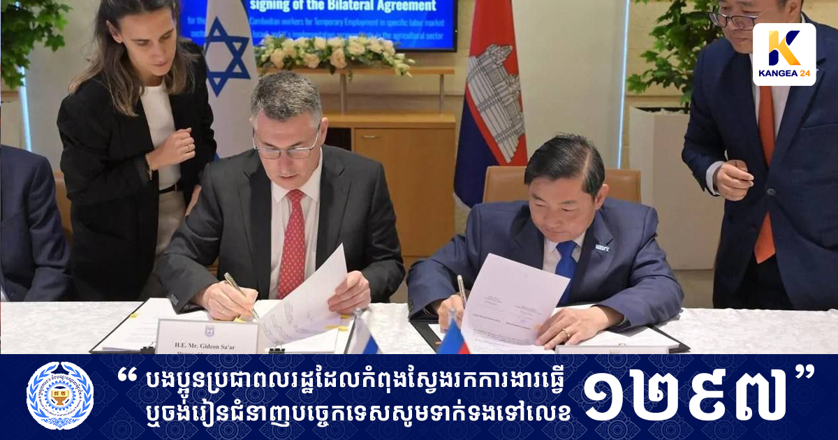 កម្ពុជា-អុីស្រាអែល ចុះកិច្ចព្រមព្រៀងស្តីពីកិច្ចសហប្រតិបត្តិការលើវិស័យការងារ