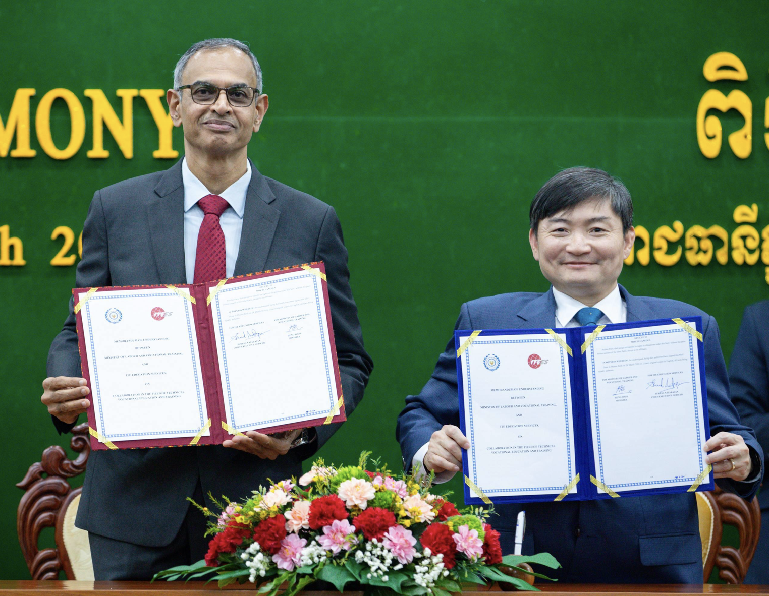 នាឱកាសនោះដែរ ភាគីទាំងពីរ បានចុះហត្ថលេខាលើអនុស្សរណៈនៃការយោគយល់គ្នា (MoU) ស្តីពី «កិច្ចសហប្រតិបត្តិការលើវិស័យអប់រំបណ្ដុះបណ្ដាលបច្ចេកទេស និងវិជ្ជាជីវៈ (TVET)» ដើម្បីពង្រីកកិច្ចសហការក្នុងការលើកកម្ពស់ស្តង់ដាបណ្តុះបណ្តាលវិជ្ជាជីវៈនៅកម្ពុជា ឱ្យកាន់តែមានគុណភាពពេញលេញ ក្នុងការឆ្លើយតបទៅនឹងតម្រូវការផ្លាស់ប្តូរឧស្សាហកម្ម និងការប្រកួតប្រជែងជាសកល។